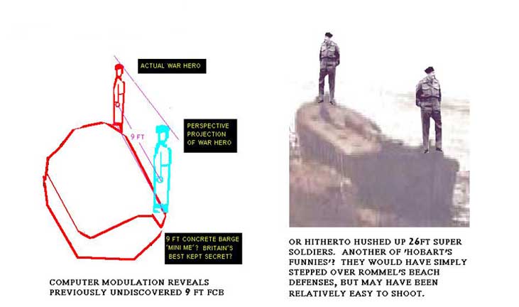 This makes a significant difference to the height of the soldiers and even taking into account the theory they may have been malnourished, it gives them a better proportion. As the Barges have relatively insignificant height the changing of the ratio makes less difference to them and this measurement was used to approximate their length. These courageous concrete constructions contributed cunningly to D-Day!