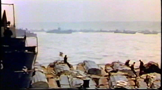 A recent program on ITV called 'D-Day in colour' had the following scene of preparations on the eve of D-Day. In my eyes it quiet clearly shows a whole pride of Concrete Barges along side the ship. Is this at last evidence that our FCB and others like it were War Heroes and deserve to be preserved in dignity?